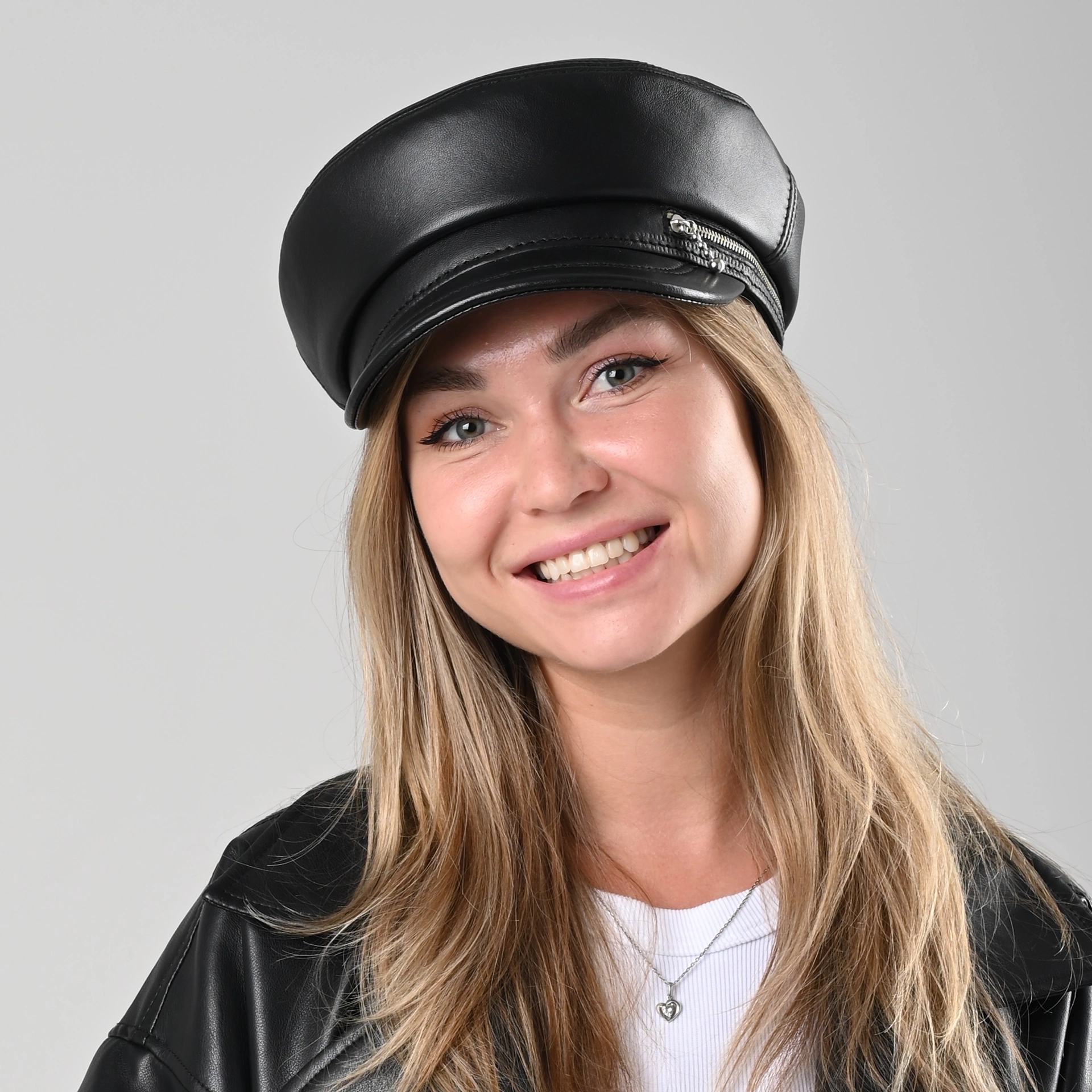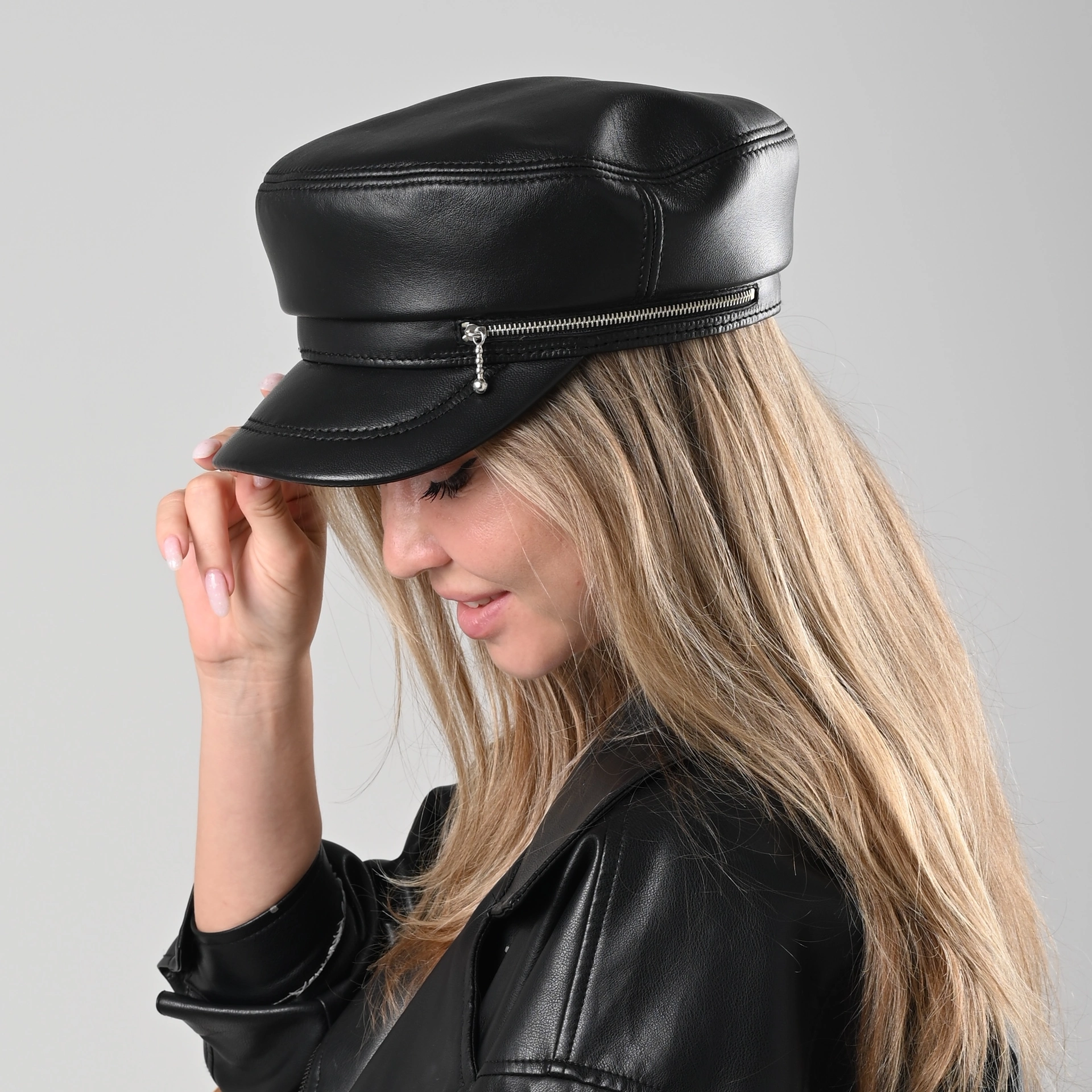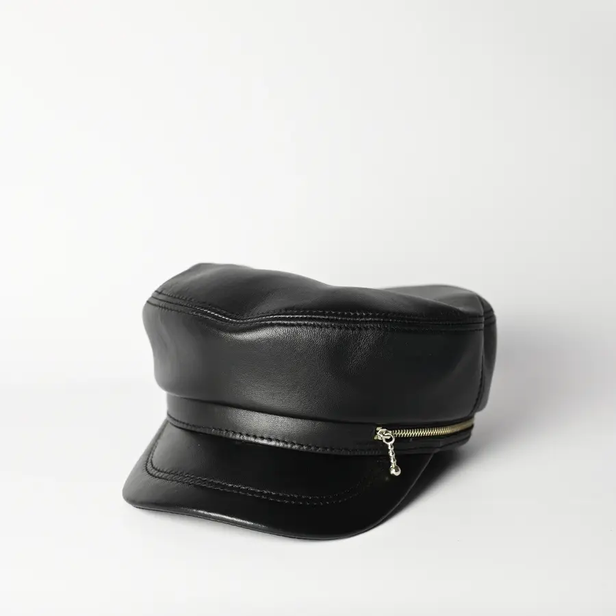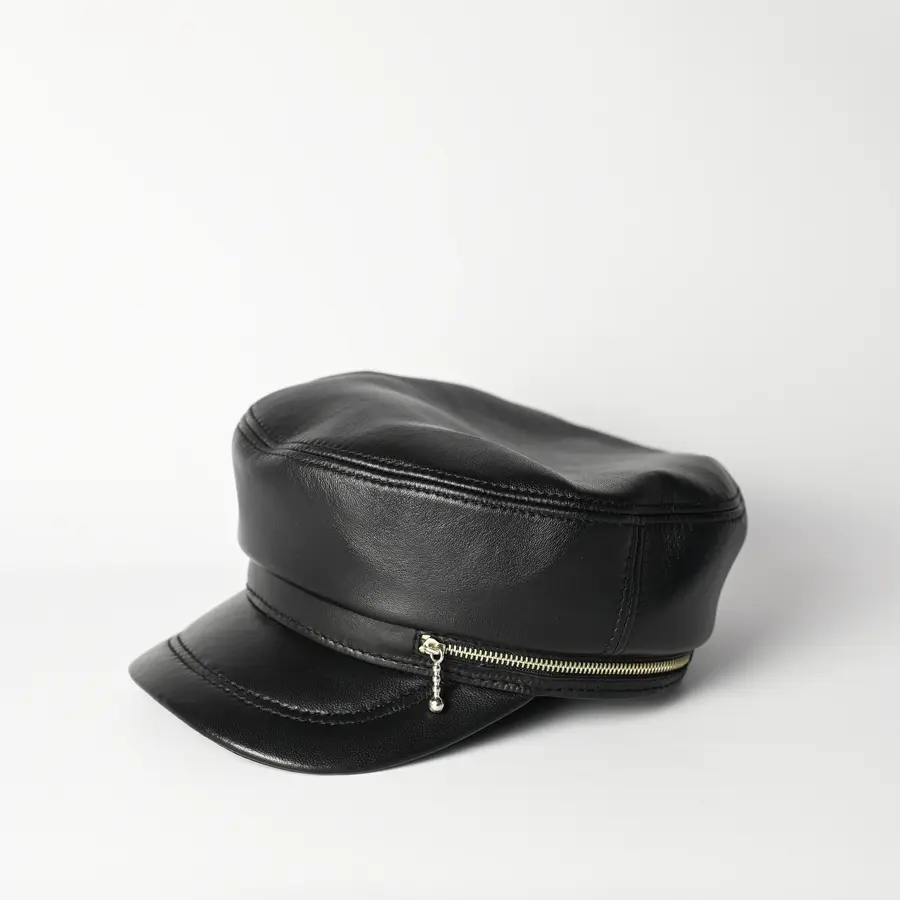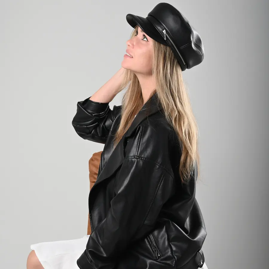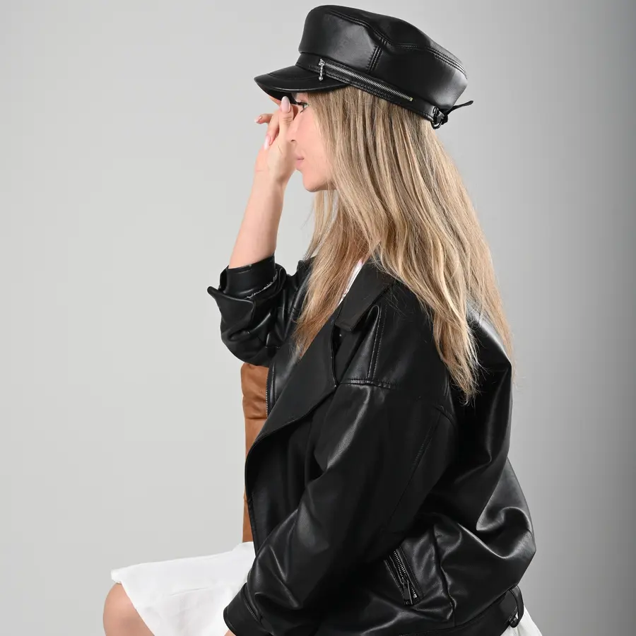 Картуз женский кожаный с молнией