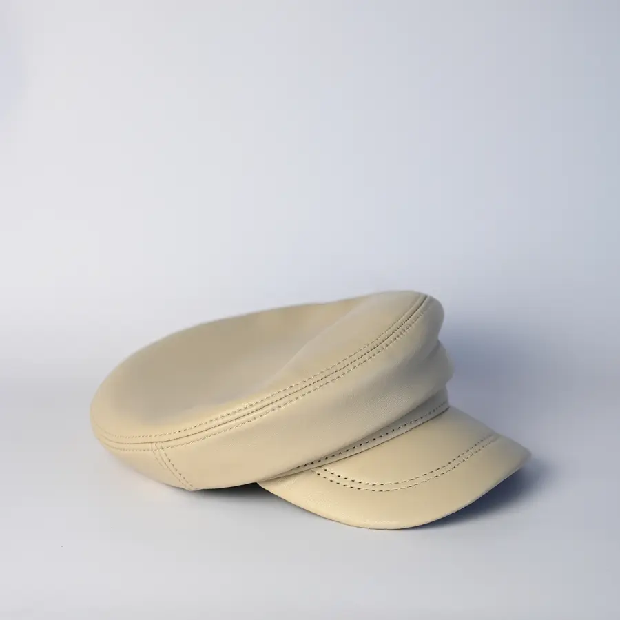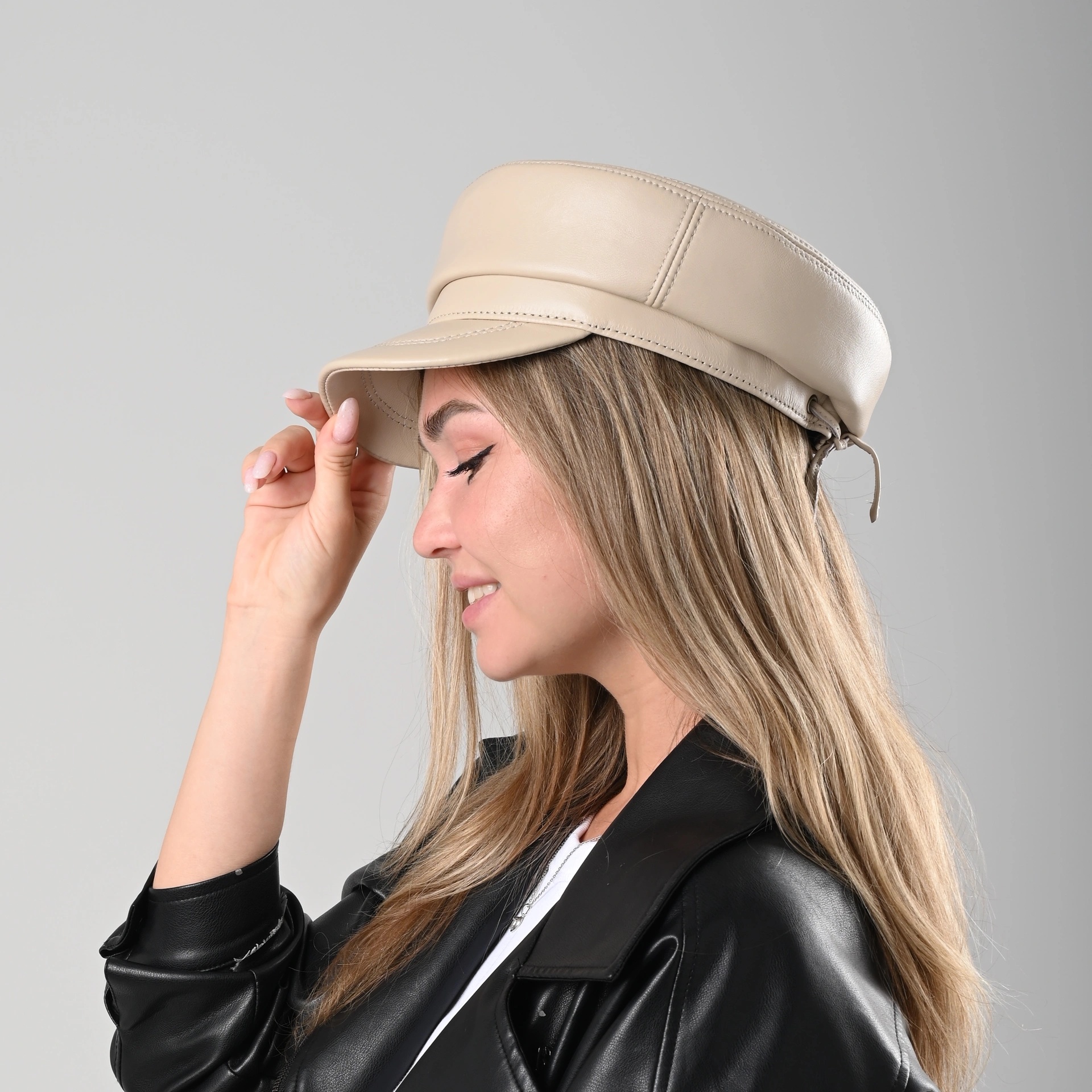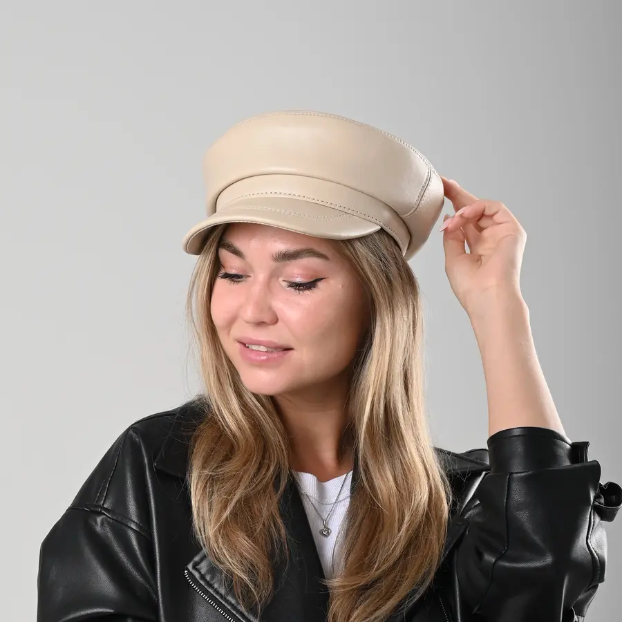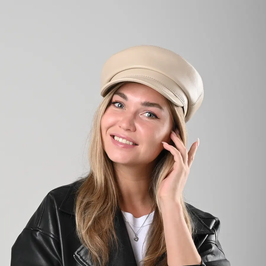 Кепка картуз женский кожаный бежевого цвета. Сделан из натуральной овечьей кожи. Подкладка имеется.