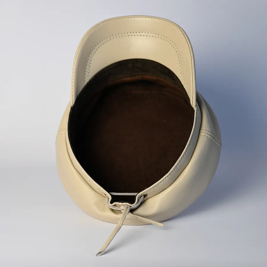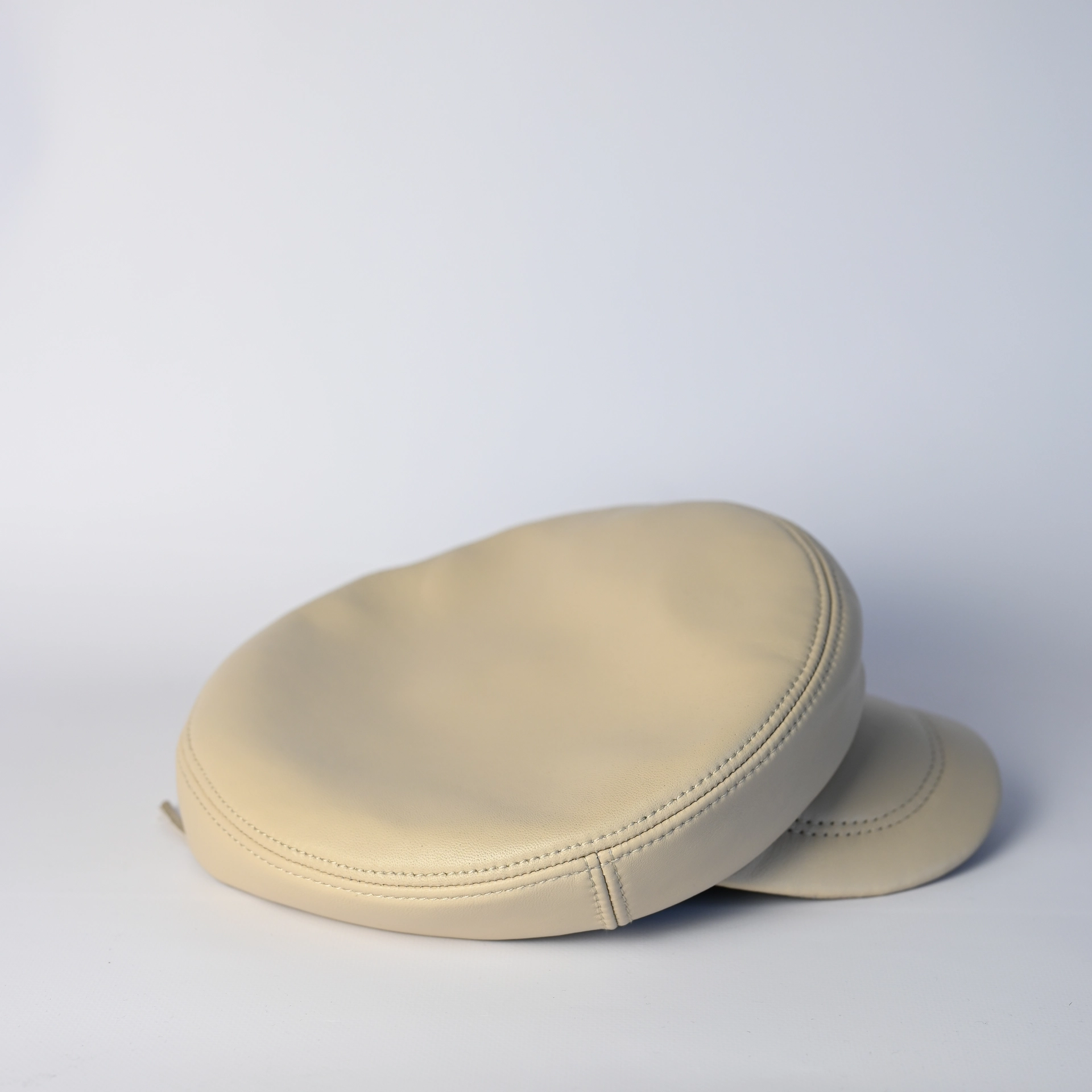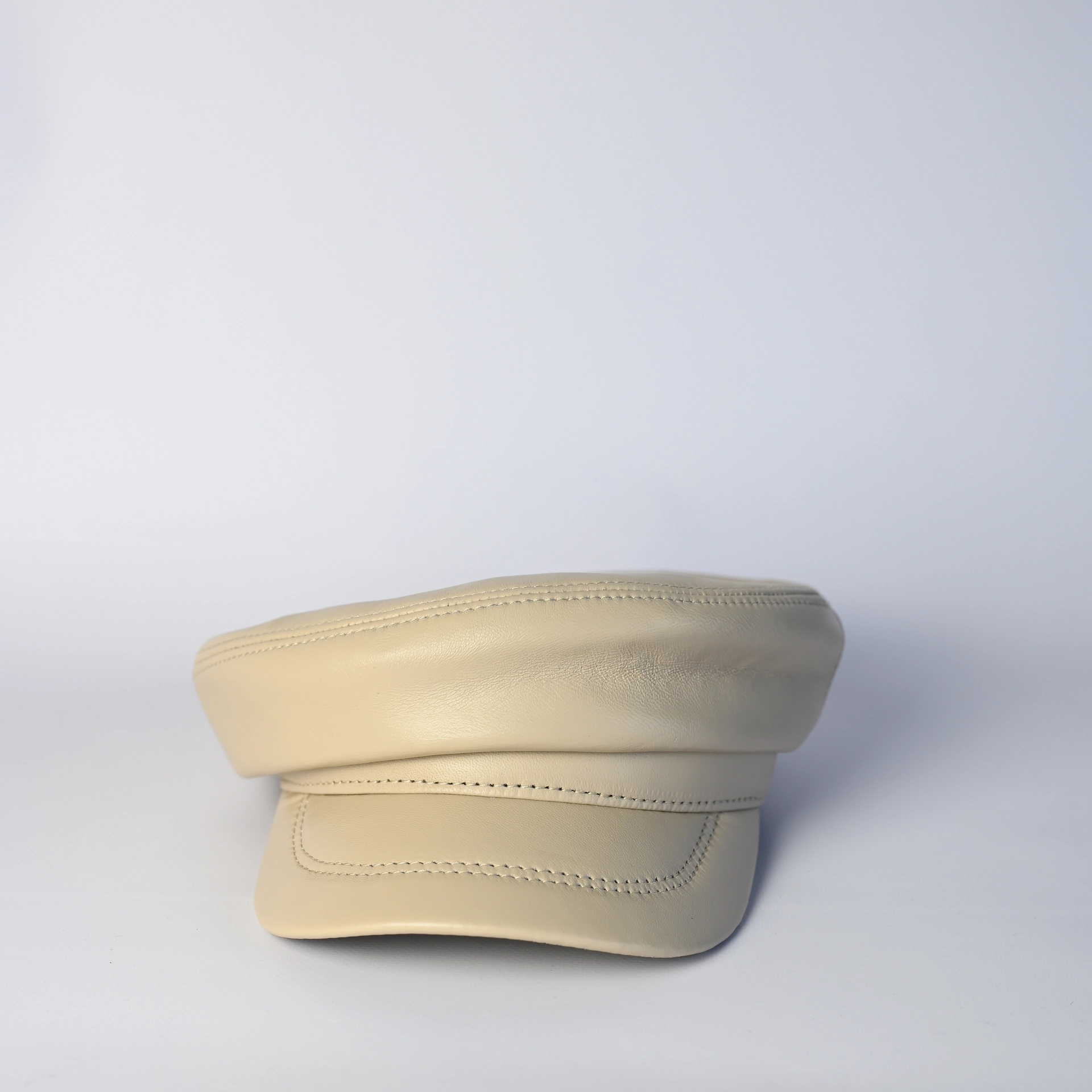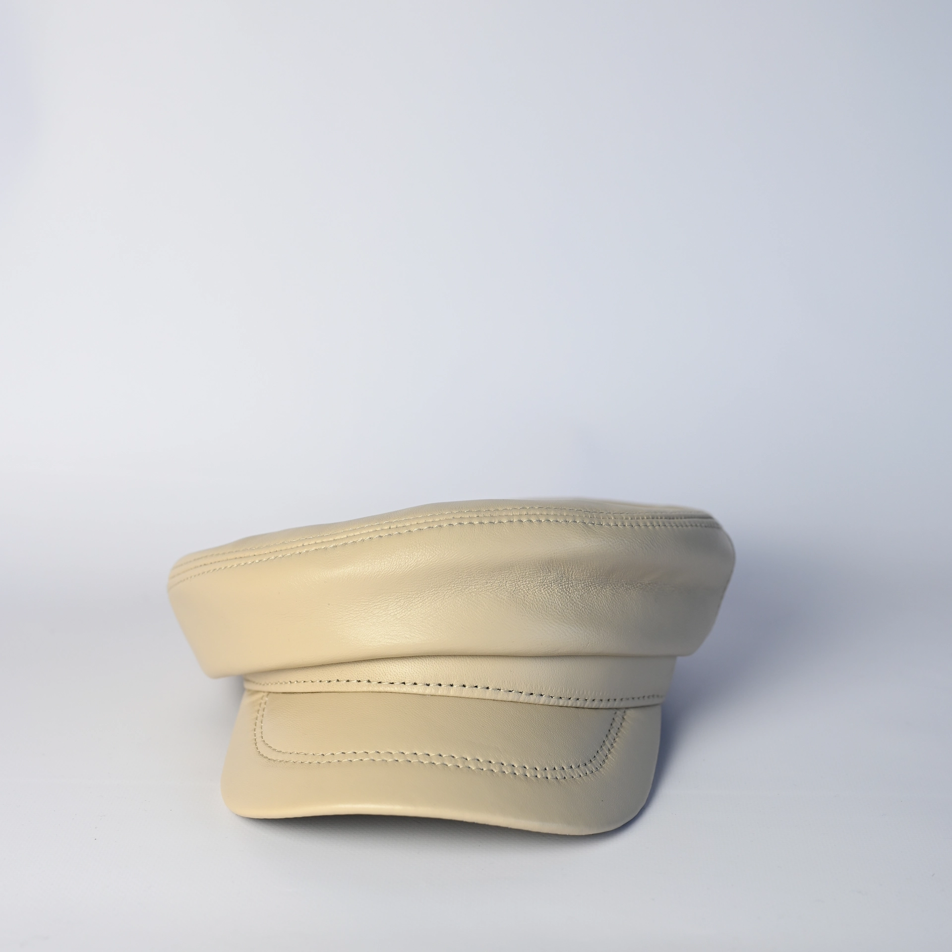 Кепка картуз женский кожаный бежевого цвета. Сделан из натуральной овечьей кожи. Подкладка имеется.