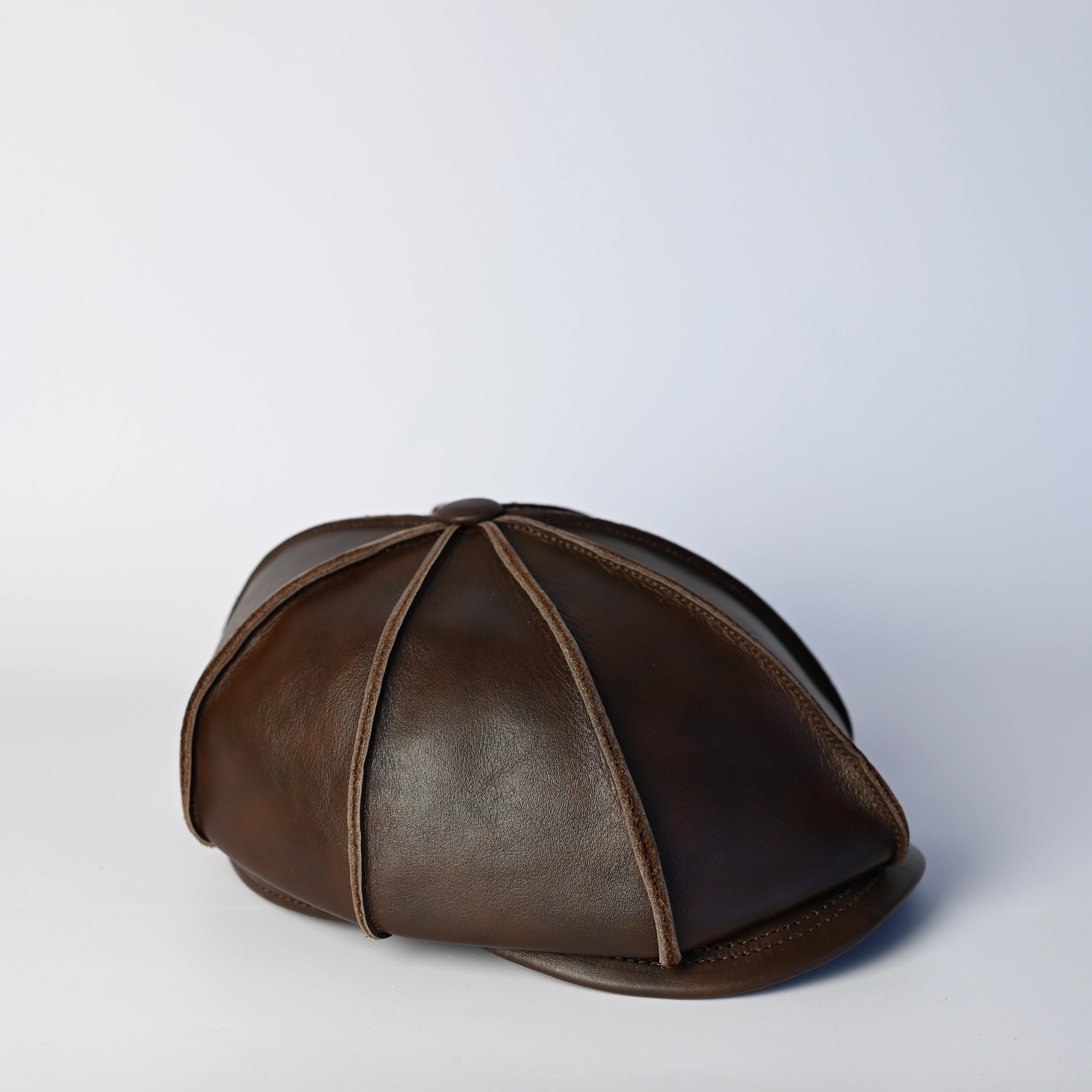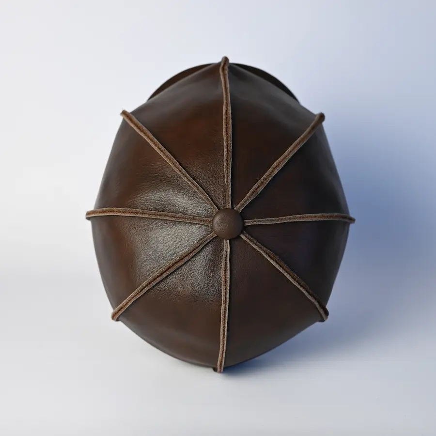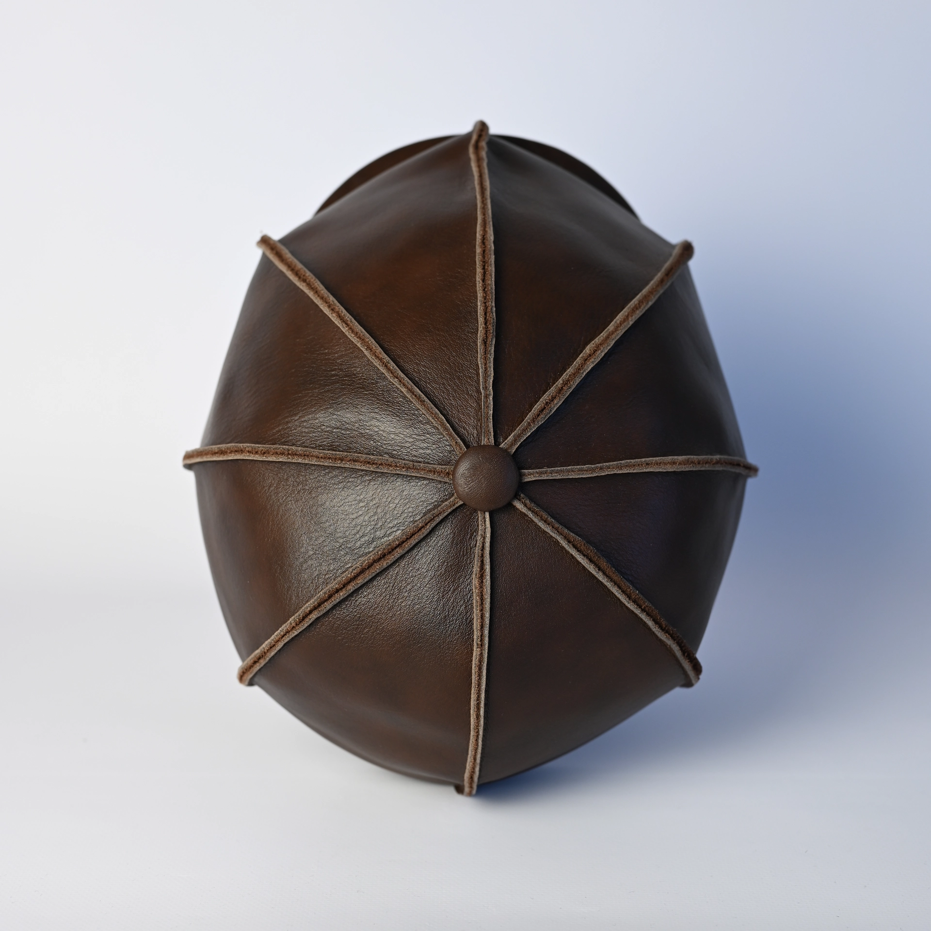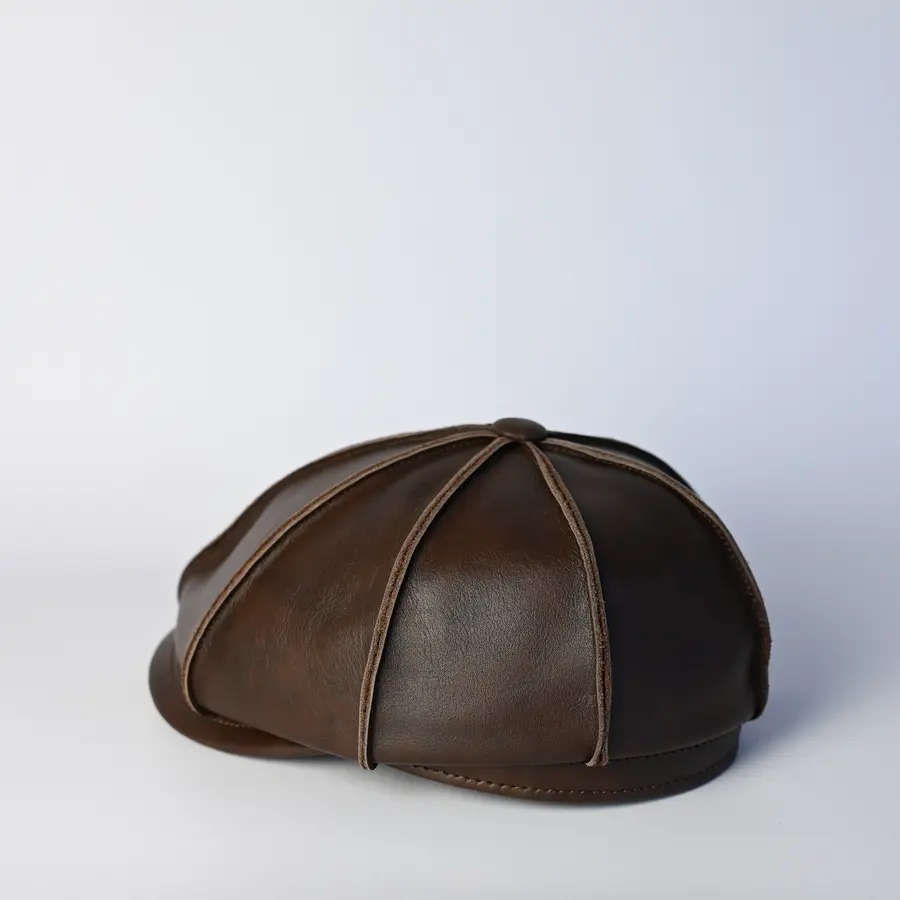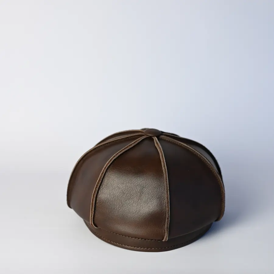 Кепка восьмиклинка кожаная коричневого цвета. Сделана из натуральной овечьей кожи. Подкладка имеется.