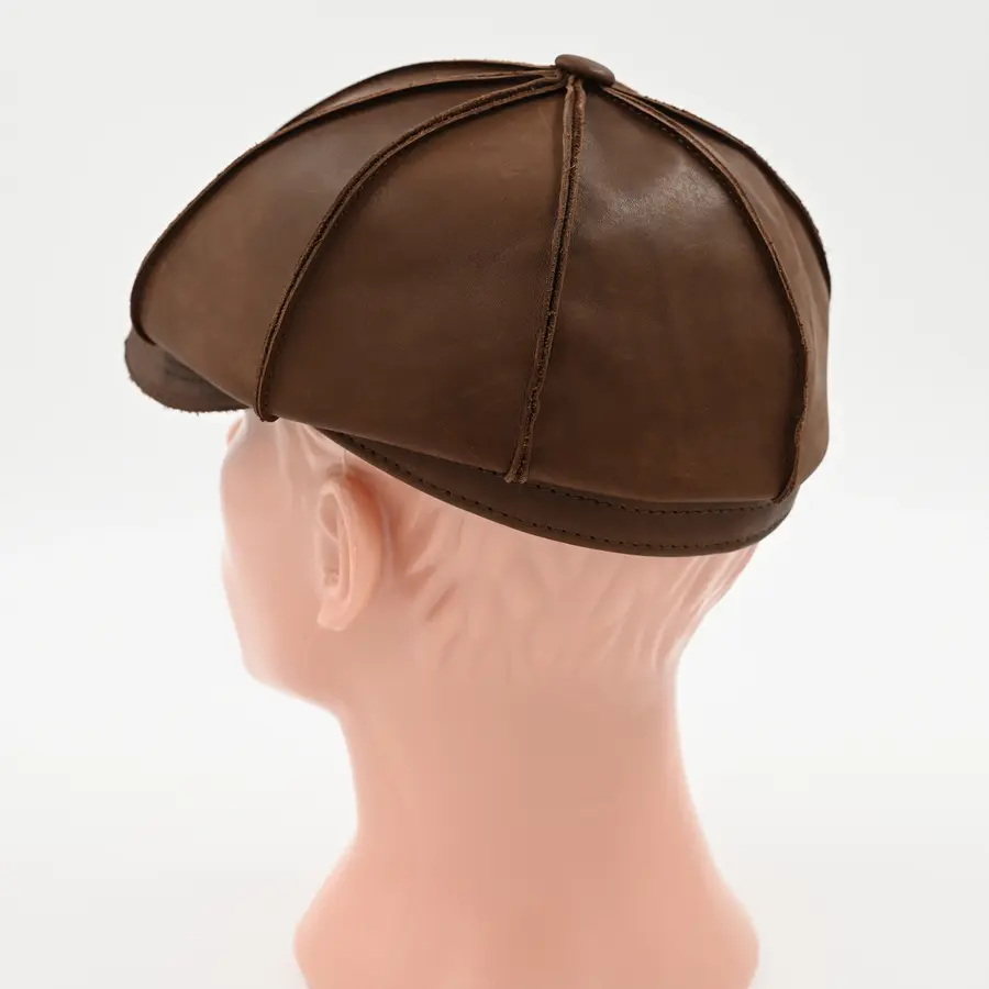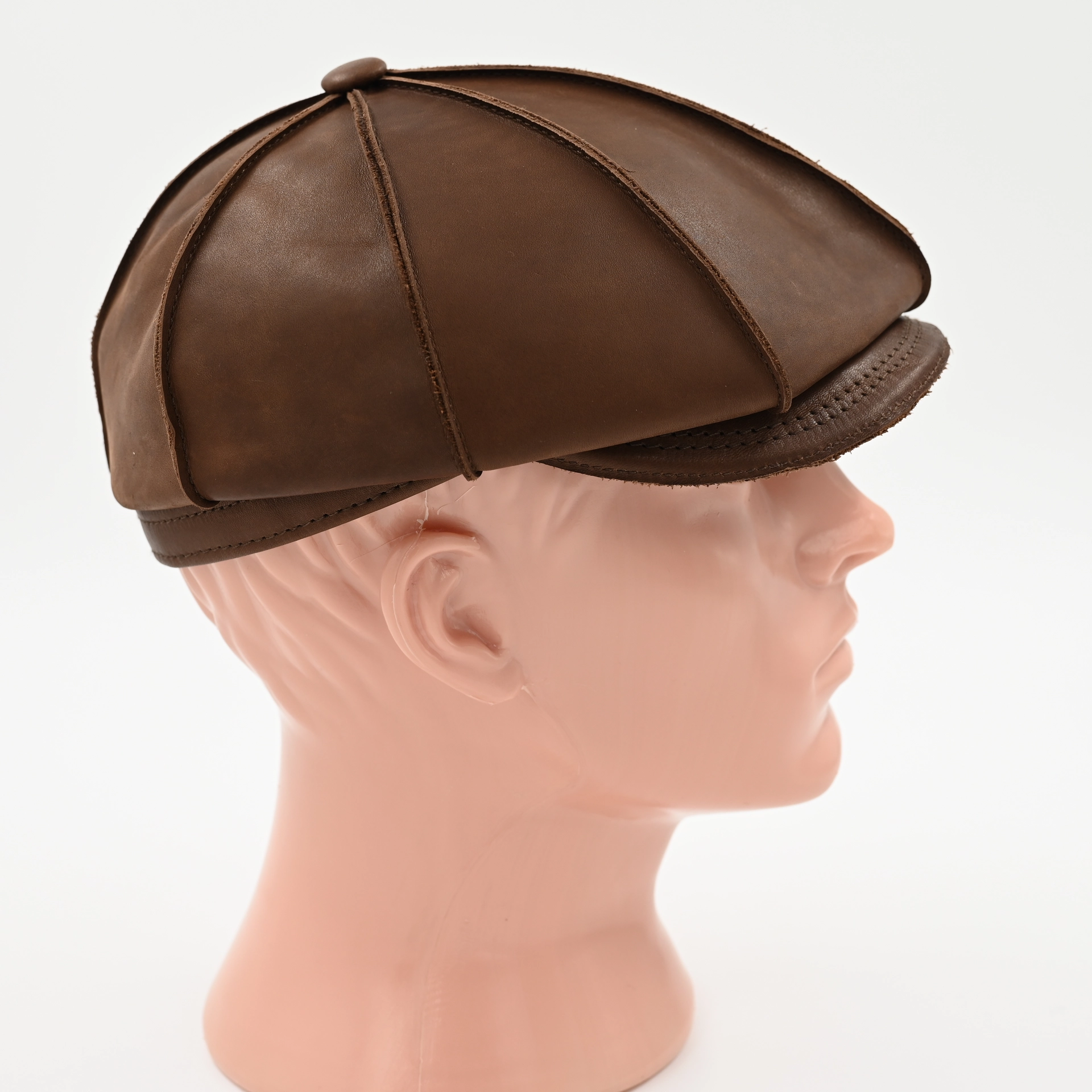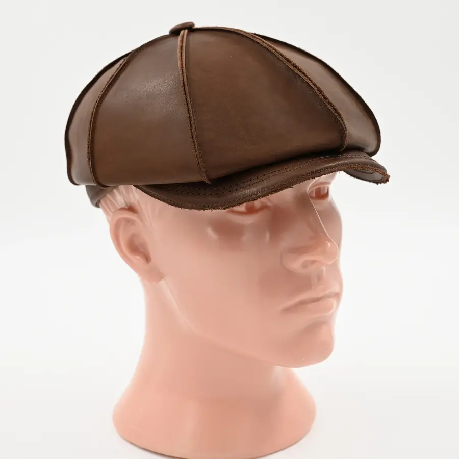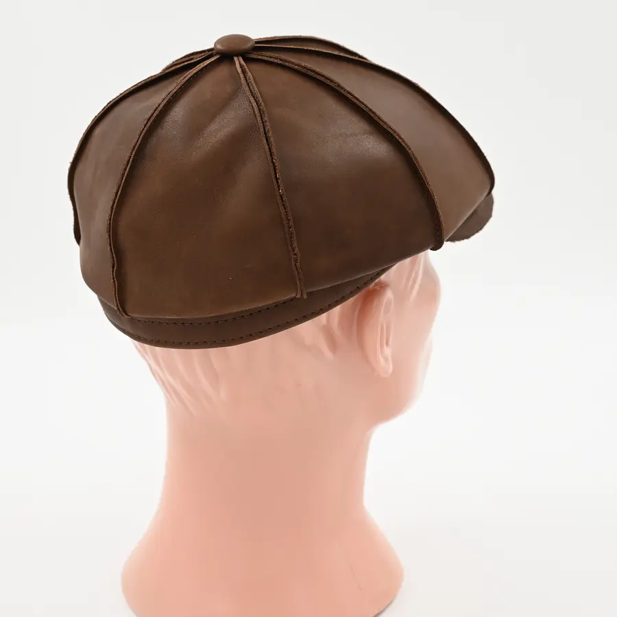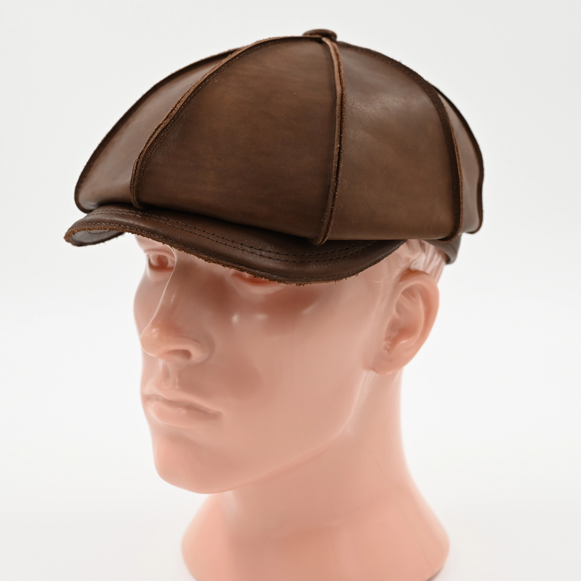 Кепка восьмиклинка кожаная коричневого цвета. Сделана из натуральной овечьей кожи. Подкладка имеется.