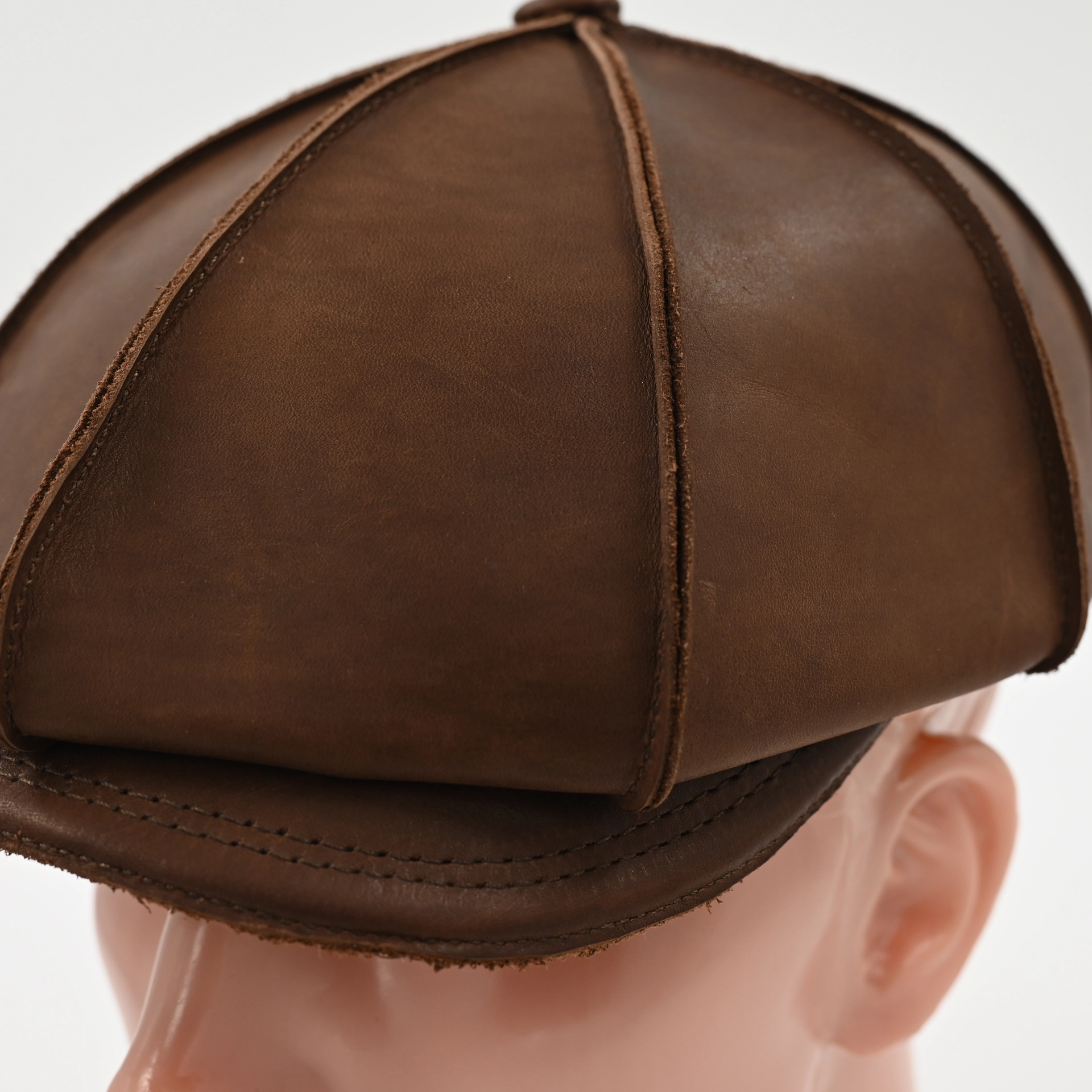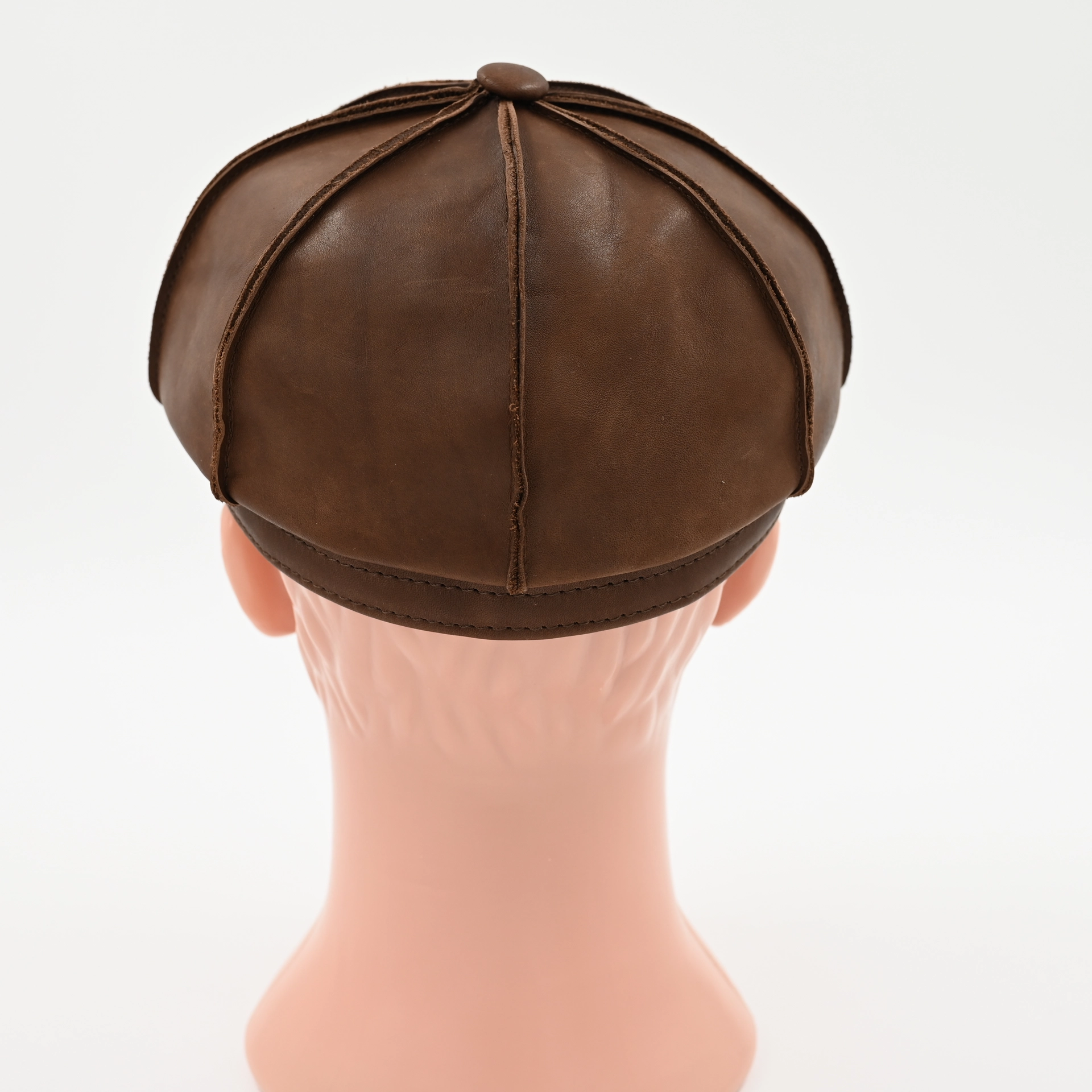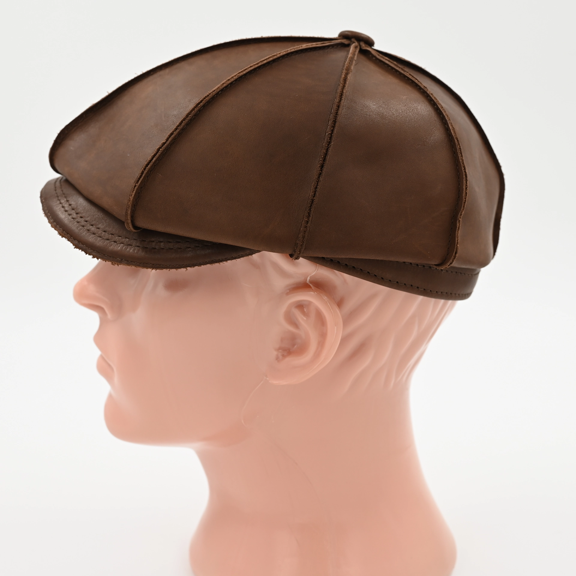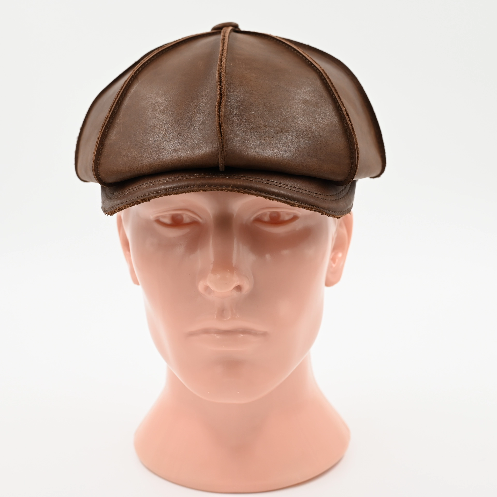 Кепка восьмиклинка кожаная коричневого цвета. Сделана из натуральной овечьей кожи. Подкладка имеется.