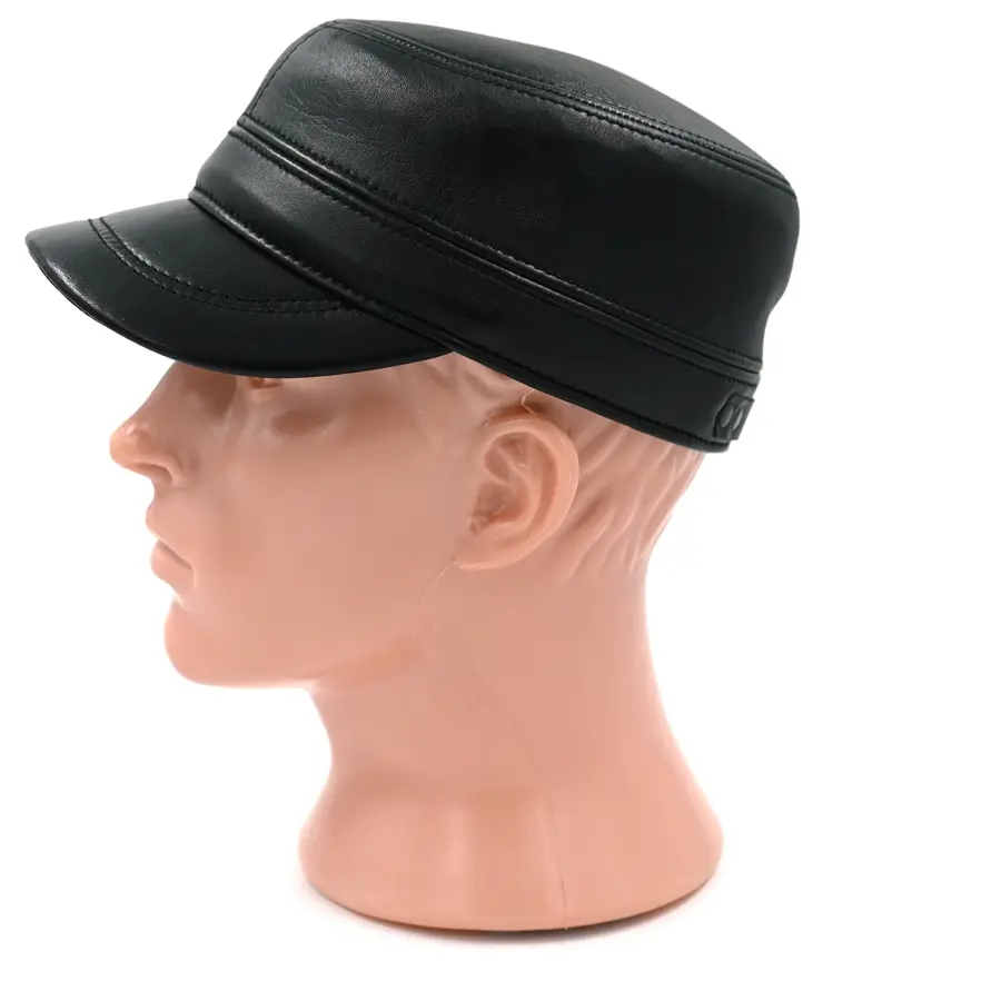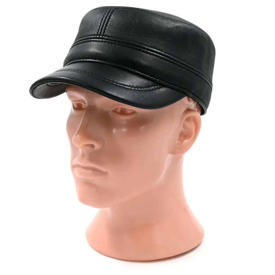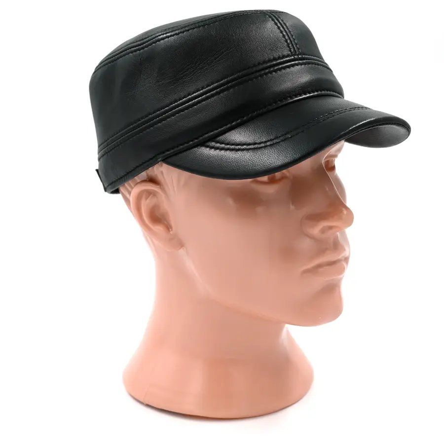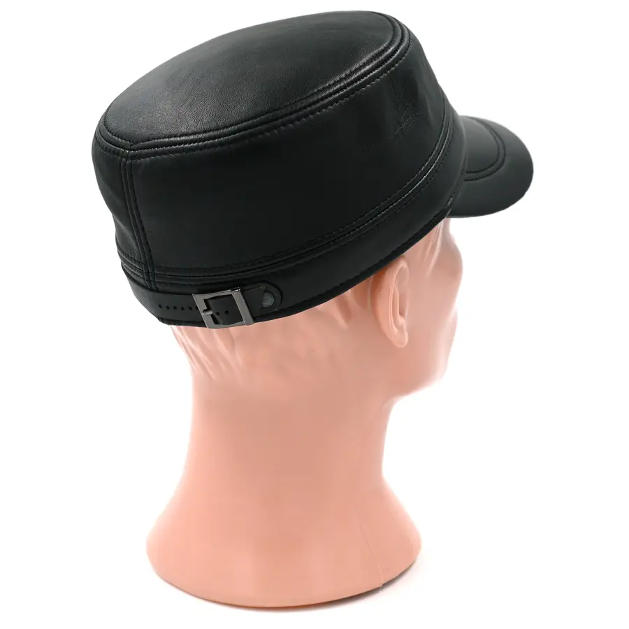 Кепка "немка" кожаная черного цвета. Сделана из натуральной овечьей кожи. Подкладка имеется.