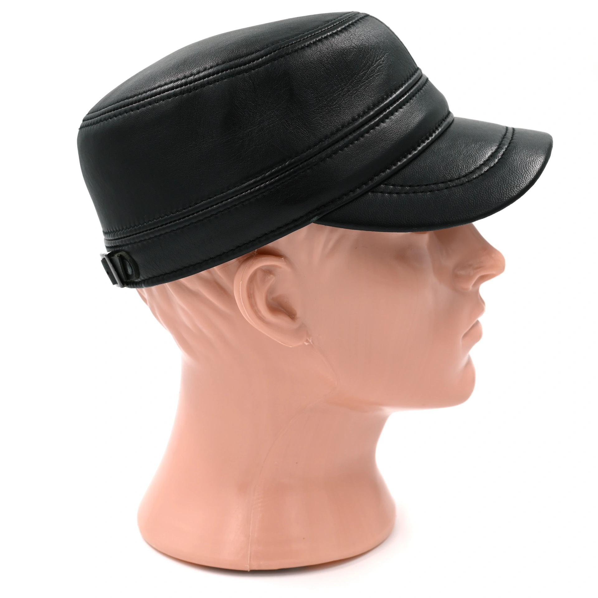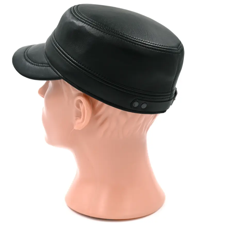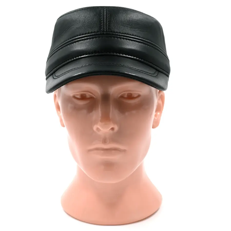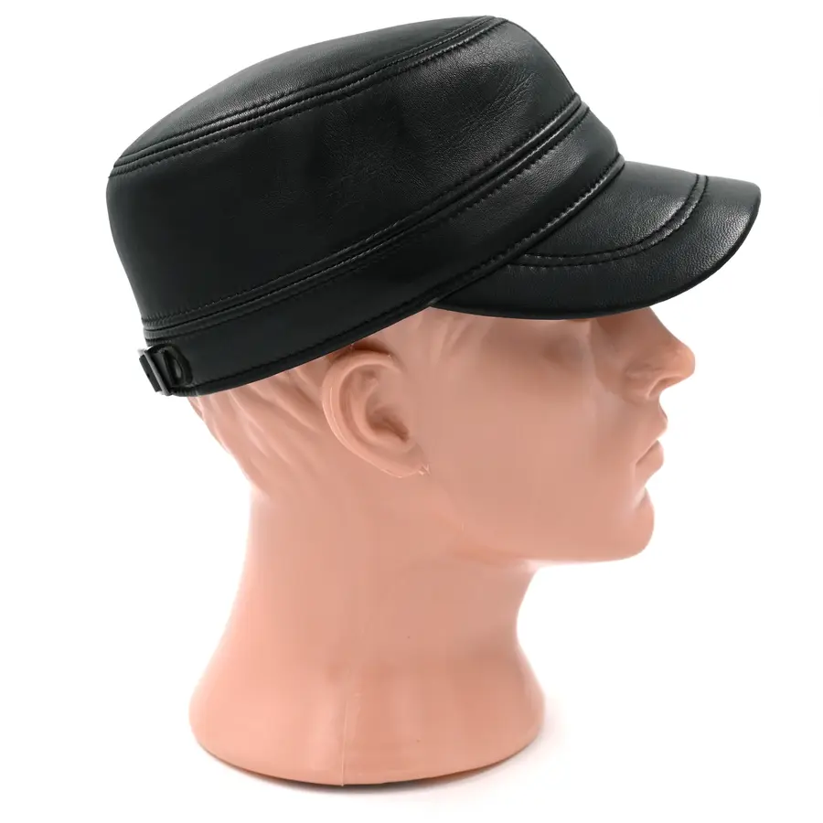 Кепка "немка" кожаная черного цвета. Сделана из натуральной овечьей кожи. Подкладка имеется.