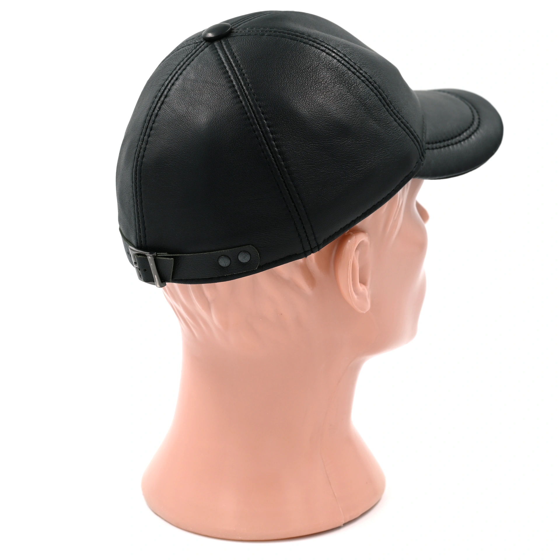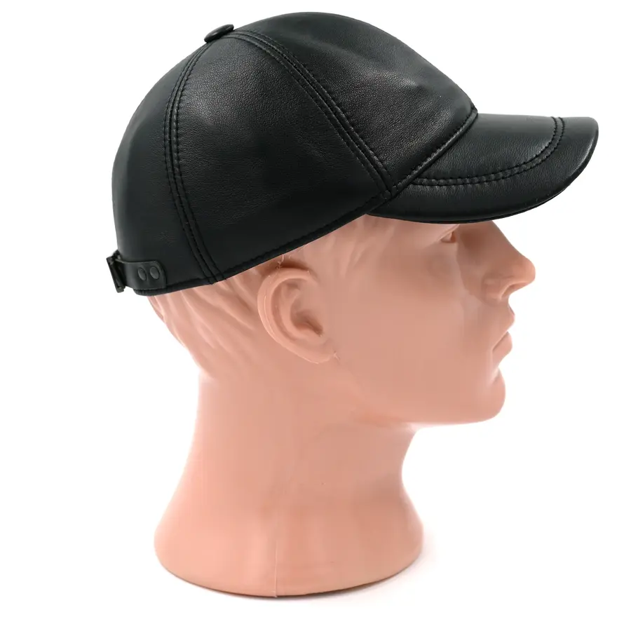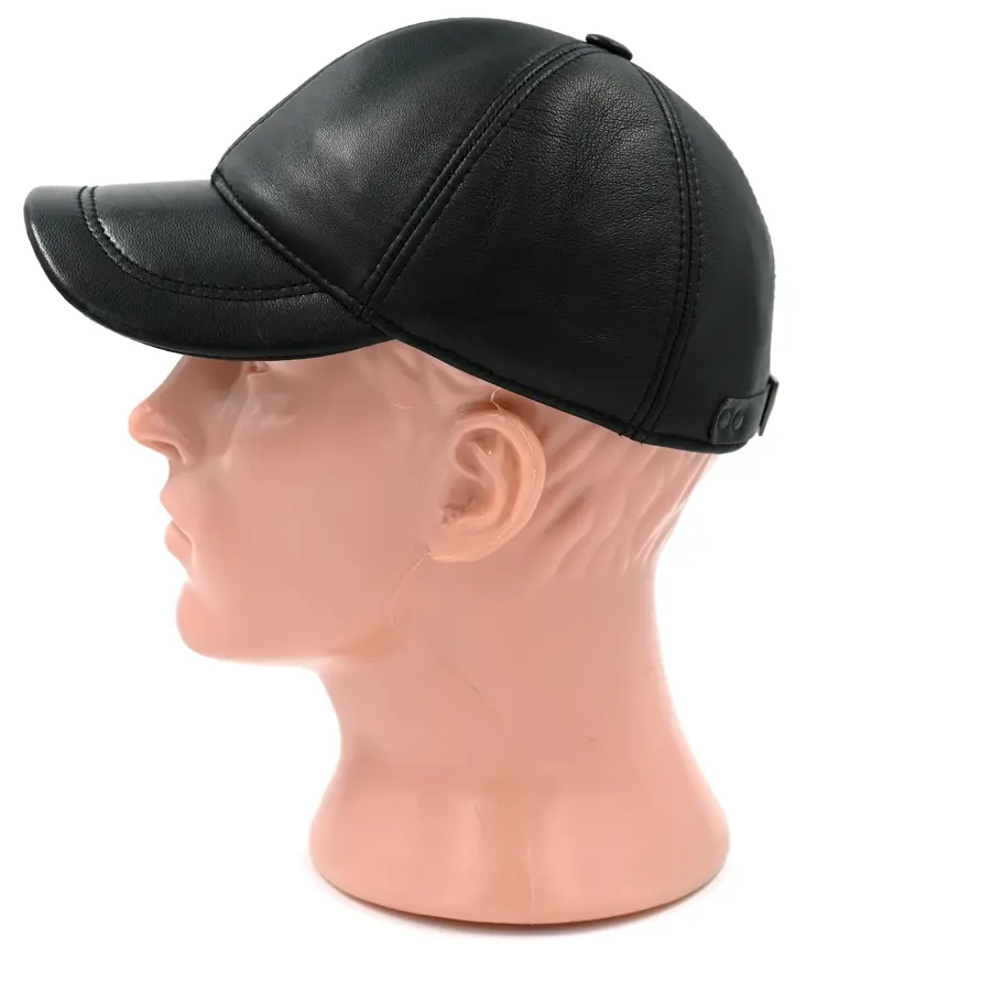 Бейсболка кожаная черного цвета. Сделана из натуральной овечьей кожи. Подкладка имеется.